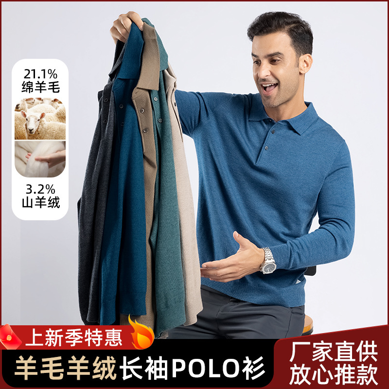 Mens wool sweater autumn new item solid color knitted sweater with collar middle-aged and young business casual sweater including cashmere top