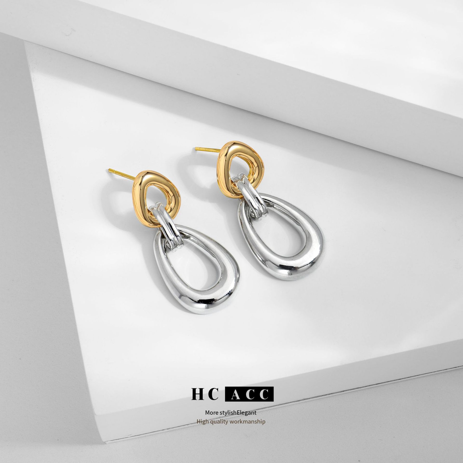 European and American retro style two-color high-grade fashion earrings niche design versatile temperament geometric female ear jewelry
