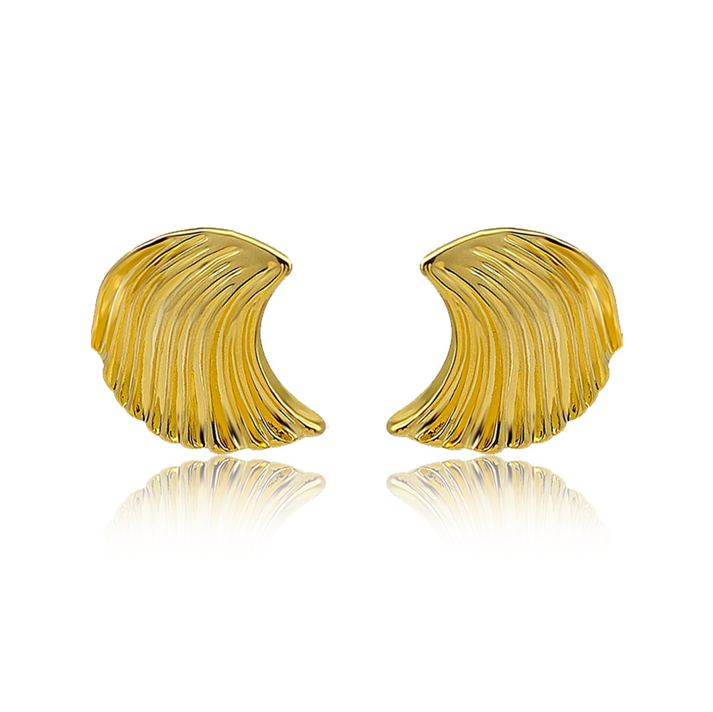 European and American creative sea wave shell shaped earrings Womens Light luxury high-end sense fan-shaped feather simple versatile earrings wholesale