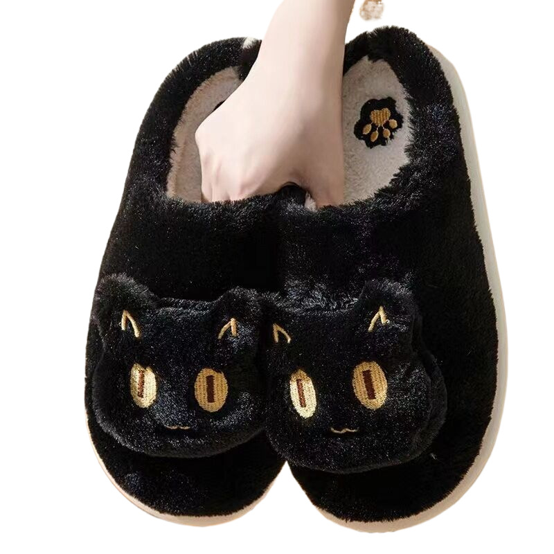 Cotton Cat Slippers Soft Plush Comfy Warm Couple Slip-On House Cute Cat Face Slippers For Winte