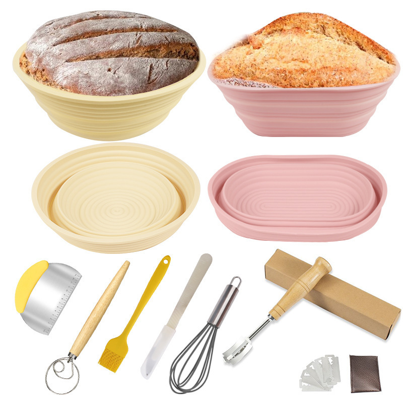 Bread silicone fermentation basket for home oven baking – foldable and heat-resistant for making bread with silicone fermentation basket